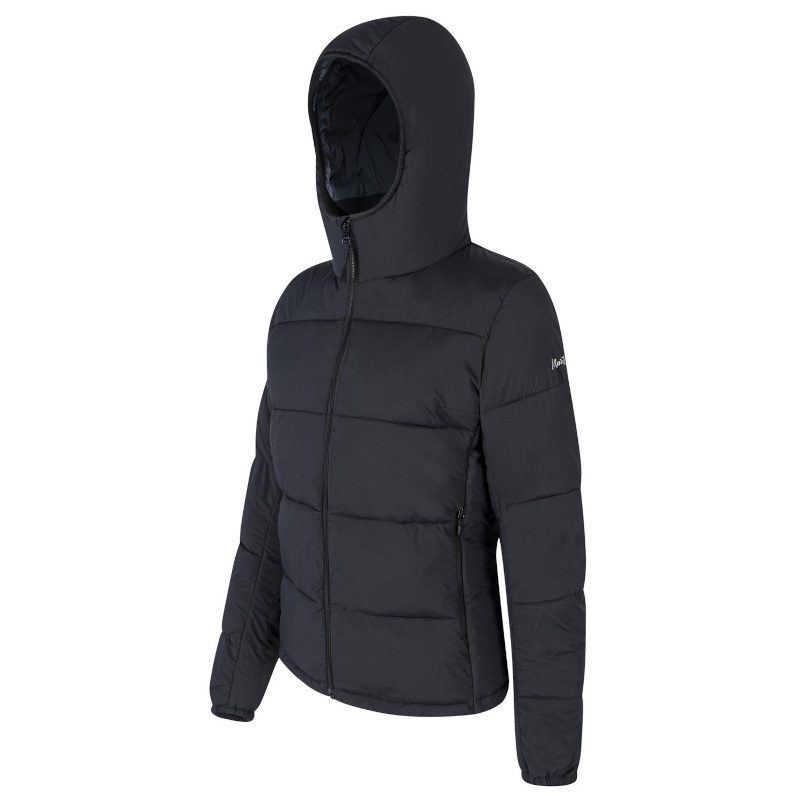 Für Frauen gibt es die Montura Gemini Duvet Winterjacke als leicht taillierte, warm gefütterte Steppjacke in black. Montura bringt hier die innovative Thermore® Ecodown® Wattierung zum Einsatz, welche eine echte und nachhaltige Alternative zur Gänsedaunenfüllung ist. Die Ecodown® Fibers werden aus recycelten PET-Flaschen gewonnen. Sie sind weich und voluminös, halten warm und verklumpen nach dem Waschen nicht.