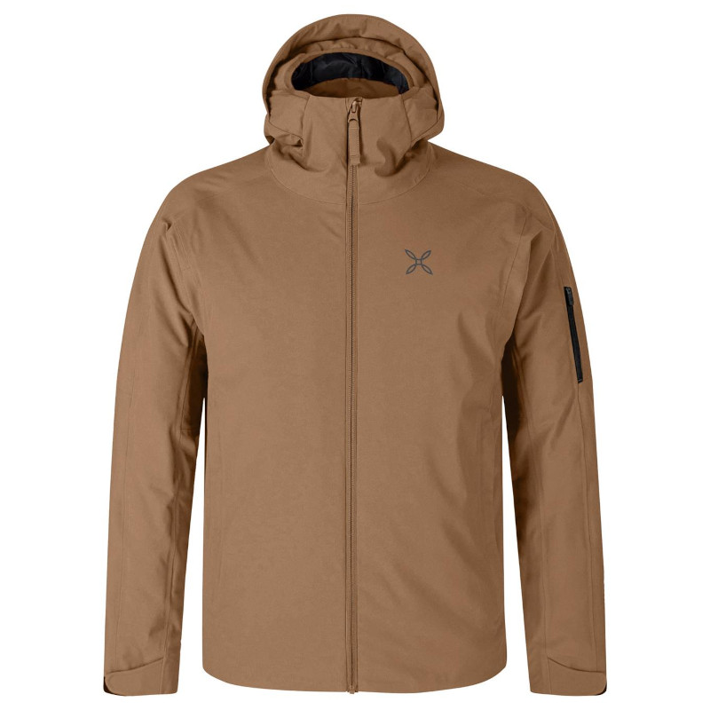 The Montura Arosa Jacket for men is a classic highlight for winter. Actually designed as a ski jacket, it convinces us completely as a winter jacket for everyday use, whether in the city or in nature. The somewhat casual cut padded hooded jacket has everything you need to stay warm and dry through the winter. It is breathable and waterproof - thanks to 3-layer Pro-Meteo and Pertex Quantum® - and comfortably warmly insulated with Comfortemp®. At 750 g, the winter jacket is still light and the outer material is very pleasant to the touch and not as stiff as an ordinary hardshell jacket. The Arosa Jacket fits perfectly into the new Adventure range from Montura. For alpine skiing the outdoor jacket with its features is definitely recommended. The inner lining is comfortably soft, the hem can be varied with an elastic cord, as can the sleeves, these additionally with a Velcro strap. The ski pass can be stored in an upper arm pocket with zip on the left sleeve. The jacket also has two pockets on the inside, one of which has a zip. The adjustable hood closes high and tight at the neck and a small peak protects even in heavy snow. The discreet Montura logo on the chest is of course a must. We think this is an all-round successful winter sports jacket for skiers, mountain hikers and city walkers in the cold season.
