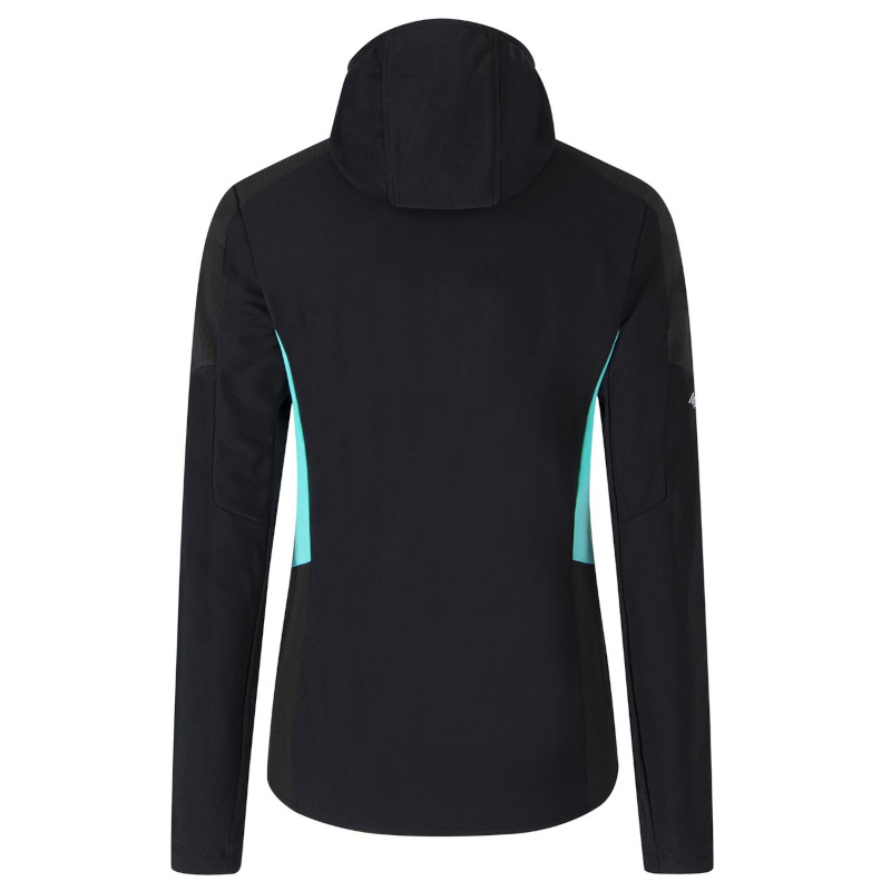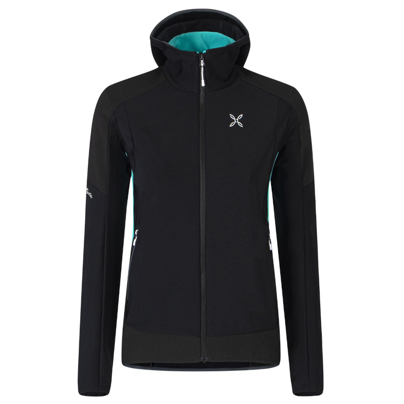 The Montura Windfit Maglia Jacket for women is a lightweight, stretchy running and fitness jacket for colder days. Featuring a hood and lightweight thermal stretch jersey, it will keep you warm during your fitness exercises and outdoor activities like running without becoming a burden. The jersey jacket in black with care blue accents is rather simple, but functional, as it is breathable, water-repellent and equipped with UV protection UPF50+. In addition, it is PFC-free.