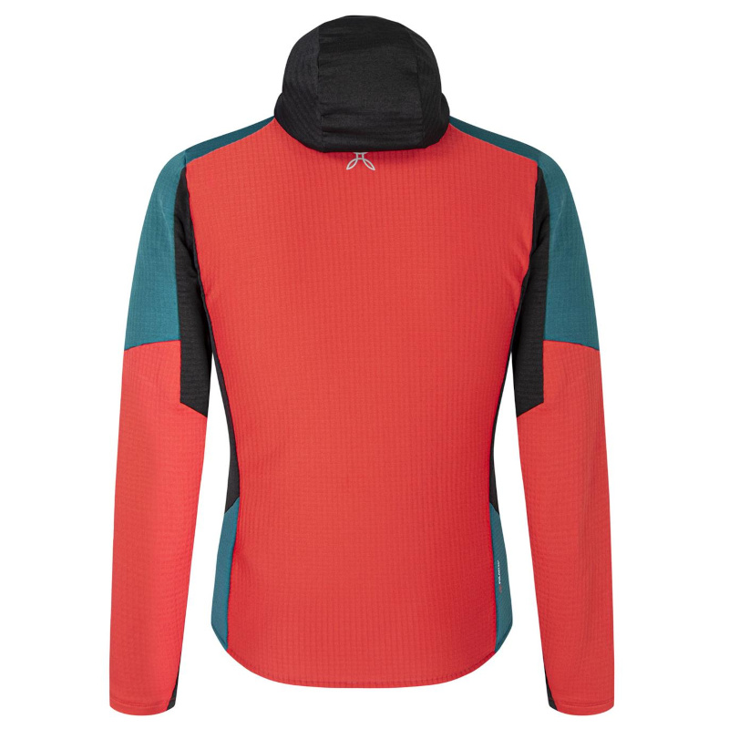 The Montura Stretch Color Hoody Jacket is a warm but lightweight hooded fleece jacket in power red made from Polartec® Power Grid™ with UV protection. The fleece material with the attractive waffle structure is very breathable due to the patented two-component grid processing, dries quickly and has a high wearing comfort as well as optimal heat regulation. The stretch jacket with hood and zip is also very economical, as thanks to the special Polygiene® Odor Control finish it can be worn more often, but needs to be washed less often. The functional finish permanently protects against the development of unpleasant odours, as it prevents the growth of bacteria. This makes the Montura Stretch Color hooded jacket perfect for very strenuous outdoor activities such as climbing and mountaineering, alpine ski tours and trekking. On very cold days, it can be worn comfortably under a hardshell jacket.
