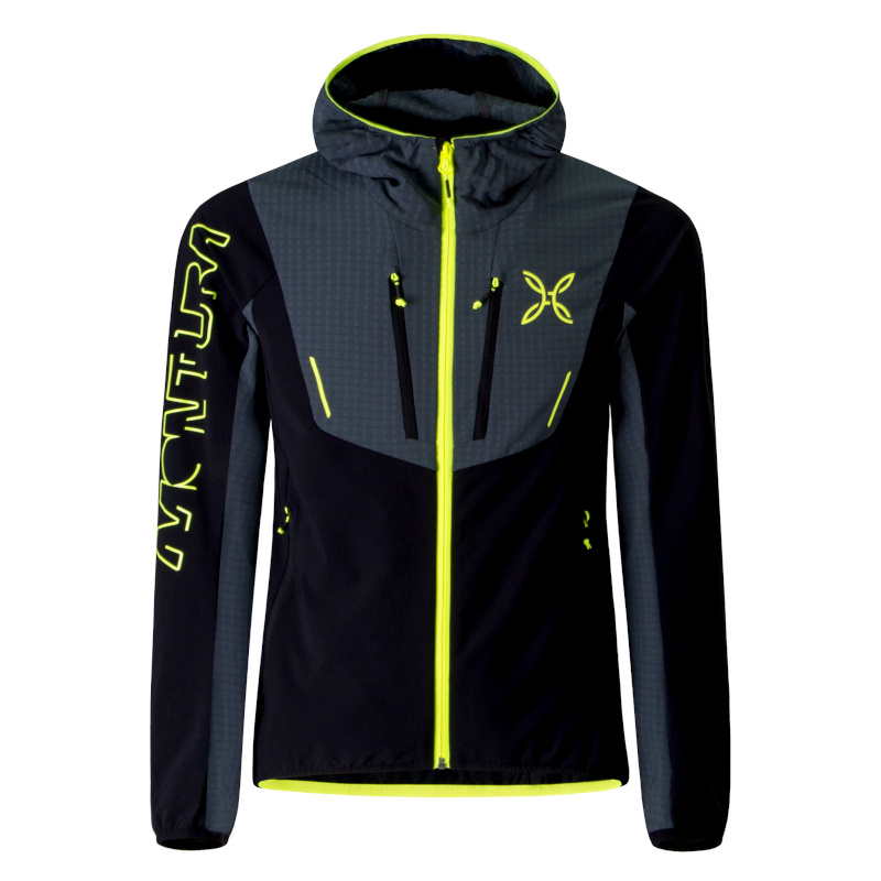 The Ski Style Hoody Jacket for men is a universal, technically well-equipped softshell jacket in black from Montura. Contrary to what the name suggests, the black and grey jacket is not only perfect for ski touring, but also for trekking, hiking and running. It is wind-resistant, water-repellent and breathable. An adjustable hood provides protection in wind and weather. The eye-catcher of this jacket is the colour-contrasting chest section with two zipped pockets and the Montura logo in neon yellow. The waffle-like structured fabric is found on the back in grey and black. The hoody jacket is nice and light at 370 g and keeps you warm from autumn to spring thanks to STORMFLEECE™. When it gets colder, it can easily be complemented with a hardshell jacket.