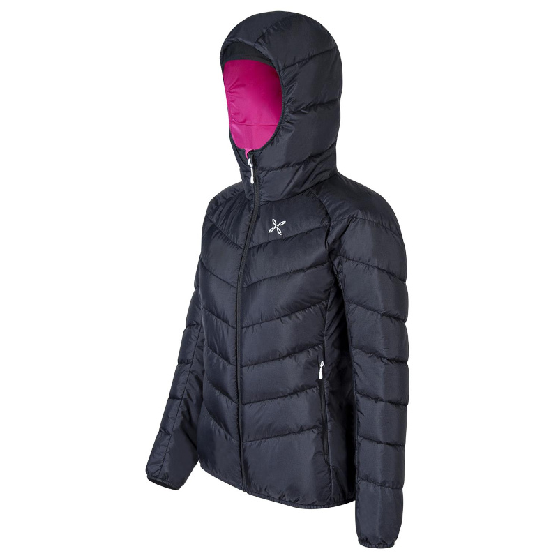 La Montura Destiny Duvet est une veste d'hiver chaude pour femmes que nous attendions. Cette veste matelassée noire avec une doublure rose est vraiment chic. Avec le tissu extérieur soyeux et ultraléger de la veste - Pertex® Quantum - elle est extrêmement compressible, résistante et protège aussi bien de l'humidité extérieure que du vent et de la pluie. Le tissu n'absorbe pas l'eau et sèche grâce au traitement déperlant durable DWR (durable water repellent), qui confère au produit des caractéristiques de performance durables, même après de nombreux lavages.