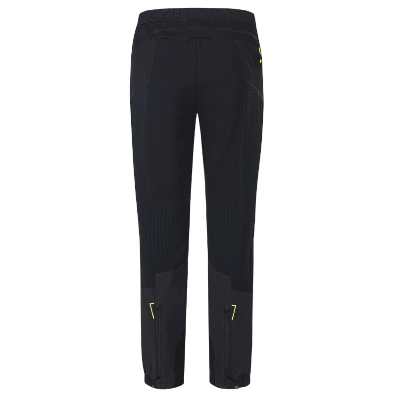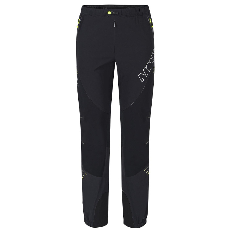 Le Montura Touch Pro Pants est le pantalon softshell optimal pour les hommes qui aiment la montagne. Ce pantalon aux finitions très soignées, de couleur noire avec quelques détails jaune fluo et le logo Montura gris argenté, est imperméable et coupe-vent. La coupe technique et les finitions robustes avec protection des bords et coutures collées au niveau des jambes en font un pantalon de montagne et de ski de randonnée optimal, avec lequel on est bien équipé au printemps et en automne comme dans la neige. Le pantalon outdoor est respirant et sèche rapidement. Le matériau élastique assure en outre une tenue parfaite et un plaisir intact en plein air.